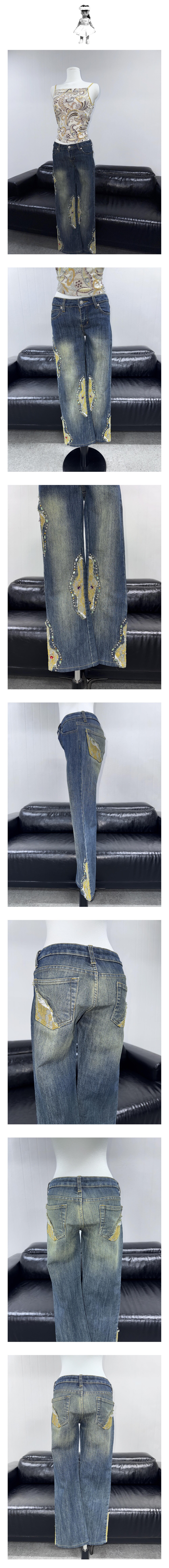 Crystal Patchwork Bootcut Jeans