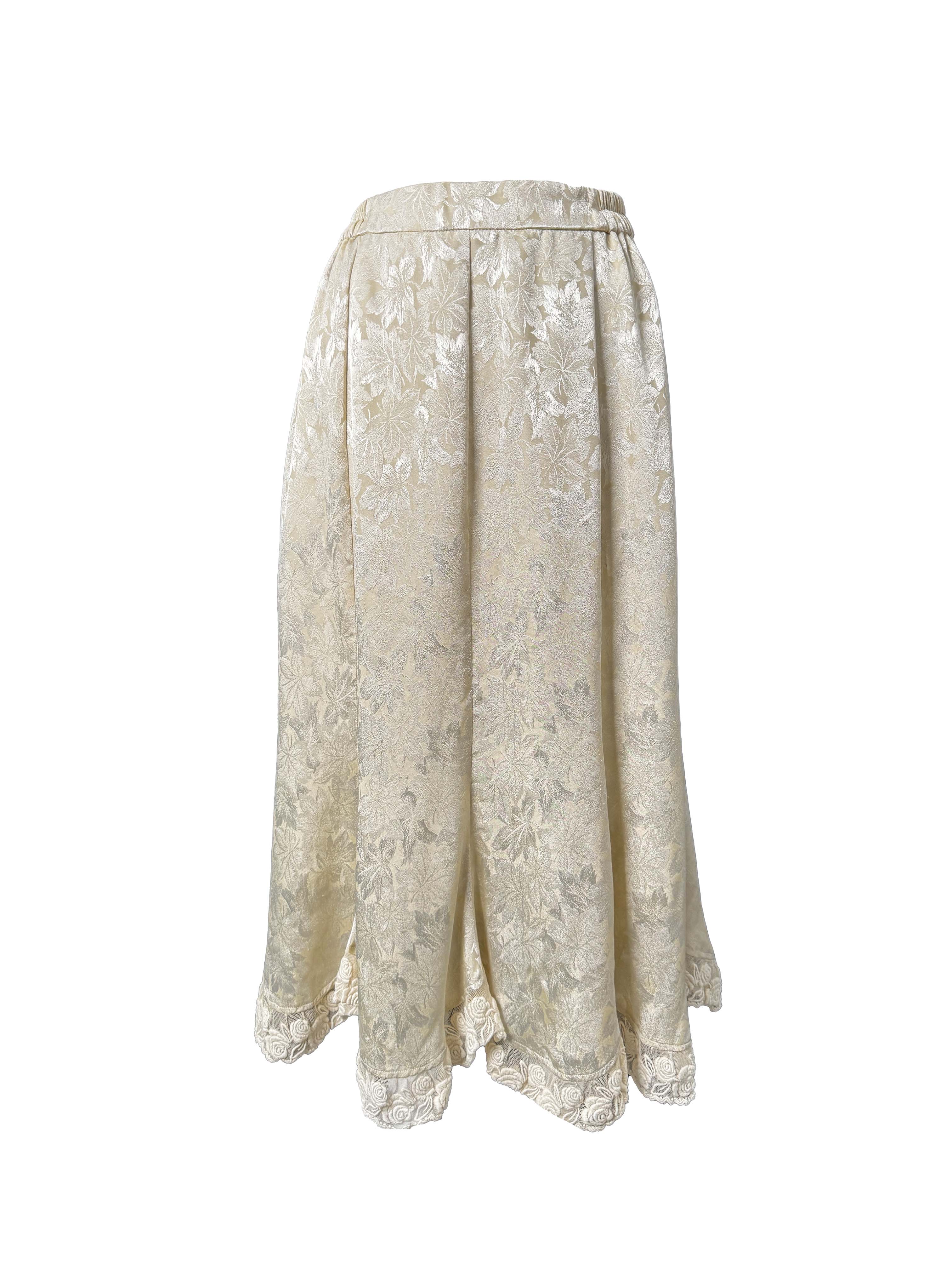 Ivory Floral Vintage Midi Skirt